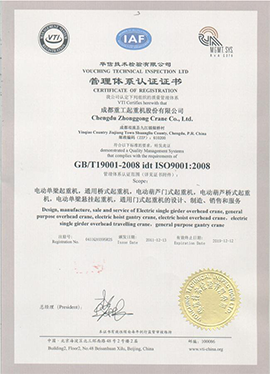 公司一貫奉行“誠(chéng)信為本,質(zhì)量為上”的宗旨,制造的產(chǎn)品及施工質(zhì)量得到了顧客的好評(píng)。銷(xiāo)售數(shù)量近幾年大幅上升,銷(xiāo)售服務(wù)機(jī)構(gòu)輻射全國(guó)二十多個(gè)省、市、自治區(qū)。本公司主要從事“重工”牌各種單雙橋式、門(mén)式、懸掛式、抓斗式、電磁式、手拉式起重機(jī),CD、MD型電動(dòng)葫蘆系列機(jī)械設(shè)備的制造銷(xiāo)售,承攬各種非標(biāo)車(chē)設(shè)計(jì)、制造安裝、維修、供應(yīng)全套配件。